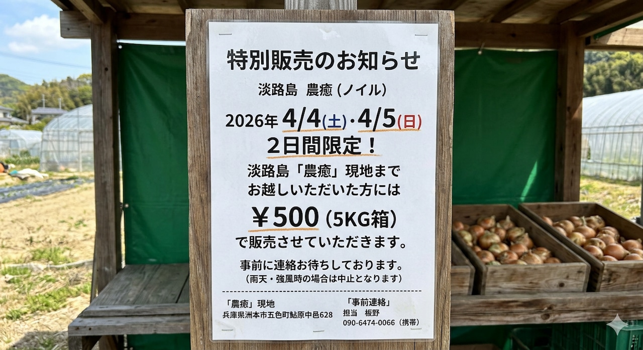 (2026/4/04(土)、2026/04/05(日)の両日に限っては 淡路島農癒(ノイル)現地までお越しいただいた方には